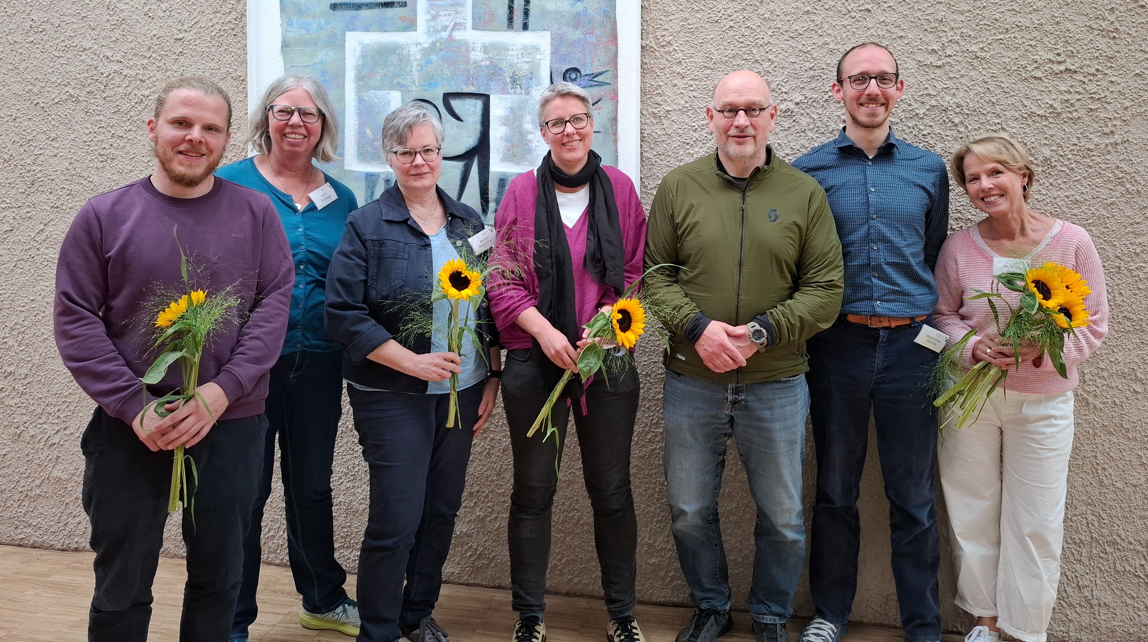 Foto von links nach rechts: Pfarrer Marcel Freitag, Pfarrerin Barbi Kohlhage, Pfarrerin Andrea Klausmann, Pfarrerin Anke Thimm, Pfarrer Matthias Mißfeldt, Pfarrer Maximiliam Dietrich, Pfarrerin Dr. Britta Jüngst